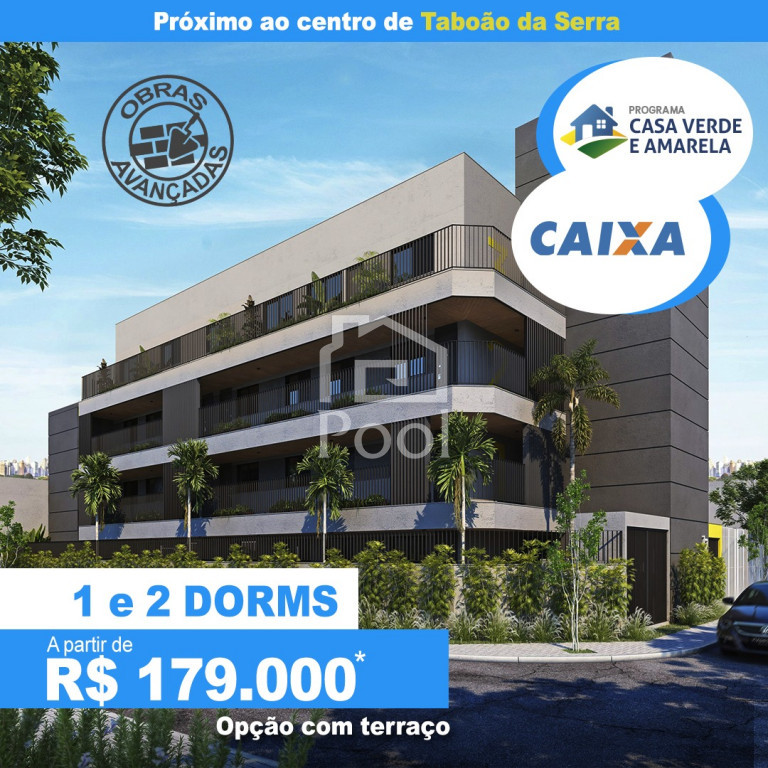 Apartamentos com 1 ou 2 dormitórios com 39 ou 46m² au com varanda, prédio com 4 andares com elevador, playground, fitness e espaço pet. Na planta com entrega prevista para dezembro de 2024. Excelente localização ao lado do centro do Taboão da Serra, com farto comércio, bancos. supermercados, transporte coletivo, etc. Entrada facilitada, financiamento Caixa Econômica, utilize seu FGTS. Agende sua visita para conhecer o apartamento modelo. Eduardo Cel. (11)9.9302-5747 (WhatsApp)